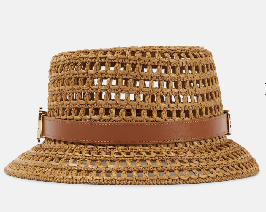Not to be confused with raffia, this woven bag is made from fabric (not grassy leafs). Eye-catcher, IMO.